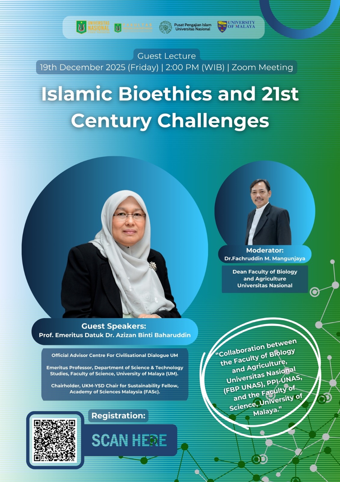 Fakultas Biologi dan Pertanian Universitas Nasional bersama Pusat Pengajian Islam dan University of Malaya mengundang Bapak/Ibu/Mahasiswa untuk menghadiri: