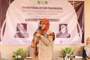 Ketua Pelaksana kegiatan, Kartika Zamalia, dalam laporannya menyampaikan bahwa seminar ini bertujuan untuk menjadi ruang berbagi wawasan, gagasan, dan inspirasi bagi mahasiswa dalam memahami konsep swasembada pangan, urban farming, serta pertanian berkelanjutan. Ia berharap kegiatan ini dapat memberikan kontribusi nyata dalam memperkuat pemahaman mahasiswa terhadap peran strategis sektor pertanian dalam pembangunan nasional.